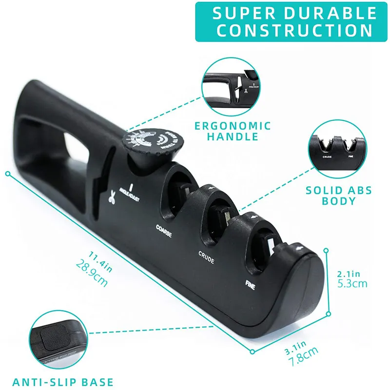 Y plástico ABS de alta calidad. Es fuerte, duradero y diseñado para durar toda la vida. Mantén la mano segura al afilar.